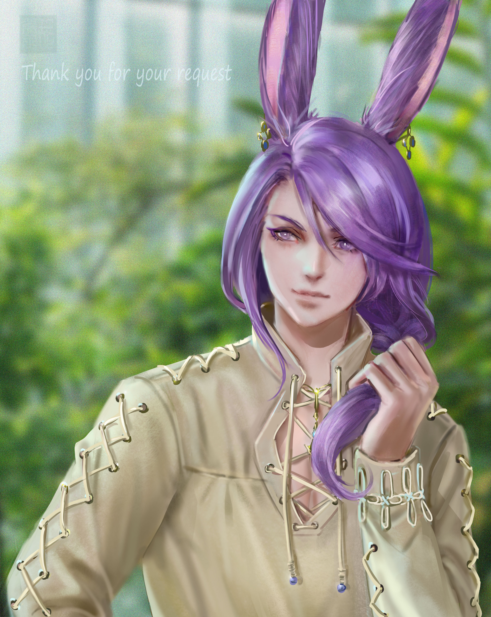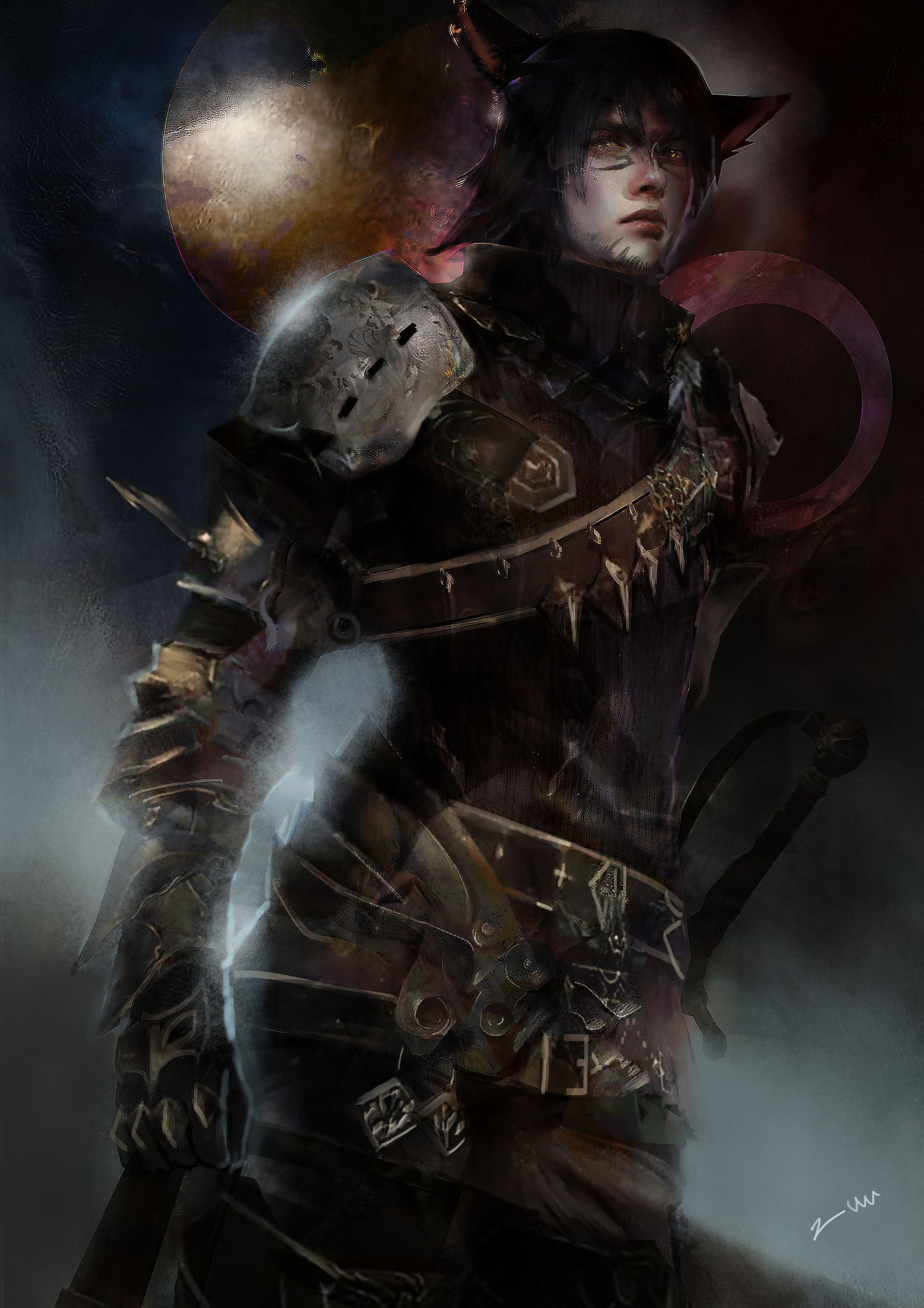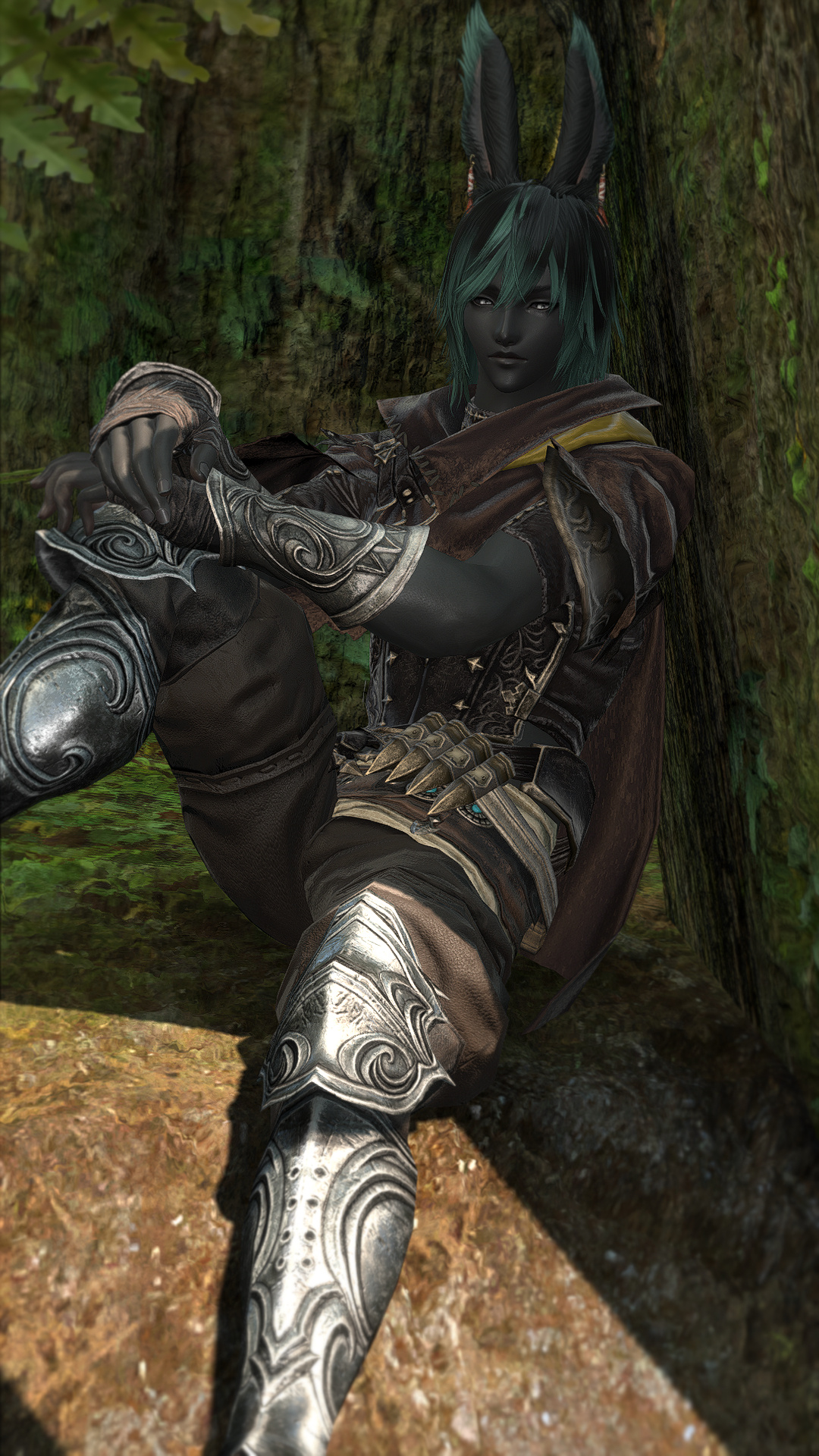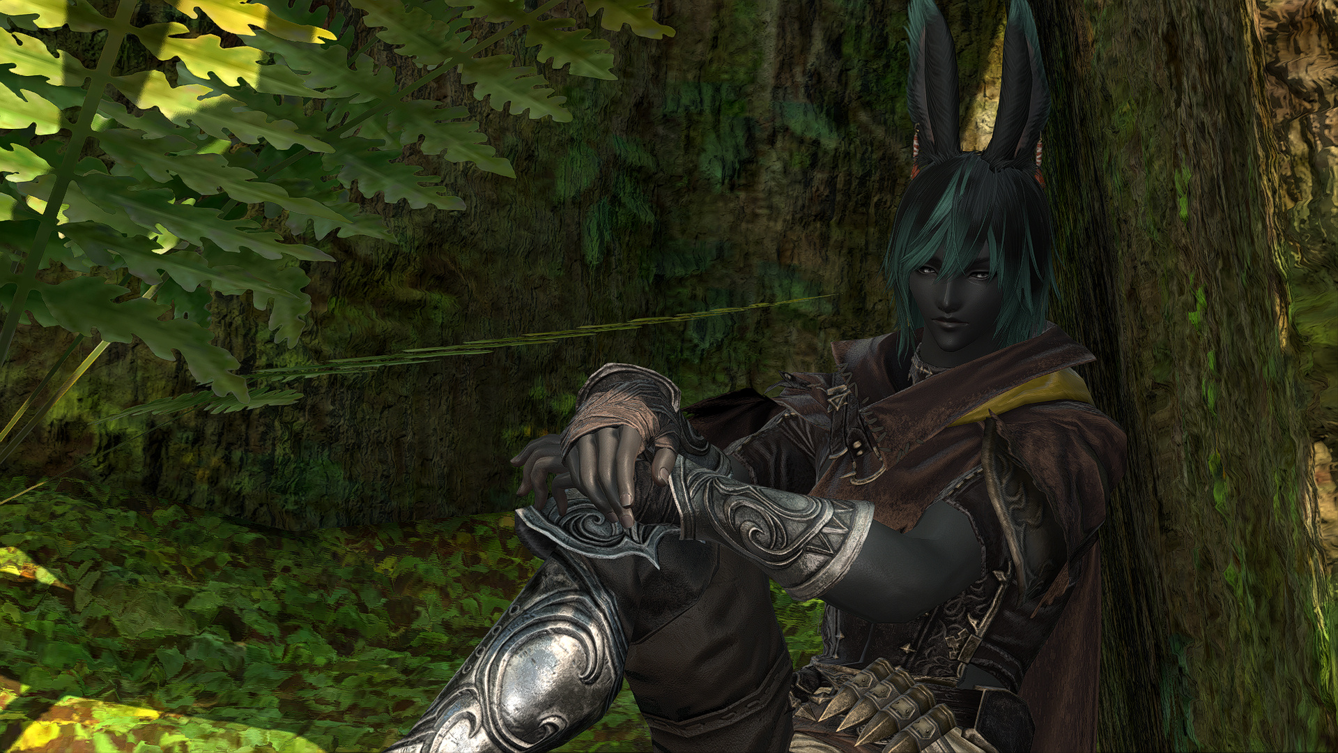 Kesjaris was born in the Rak’tika Greatwood, at the height if the Light’s hold over the land, and he grew up hearing stories about the darkness that used to shroud the sky at night and the beauty of the stars. He heard, too, praise for the flora and fauna, unspoiled as it was before the eternal presence of the Light had corrupted and killed many things and upset the balance the Viis worked so hard to maintain. Like all of the boys in his village, he was soon taken on by an older male to train and prepare for the solitary life that every male Viis lived—protecting the Greatwood as a whole by roaming the territory his mentor had roamed for nearly a century before him. Often, they traveled together. Just as often, they traveled alone.It was during his training that Kesjaris discovered he had a connection to the land, and could manipulate the earth and green, growing things as well as aid in plant growth. So, when he visited the neighboring villages to do his due diligence, he also offered his talents to help their struggling gardens grown in the ever-present Light. He was welcomed more often than most, and even sometimes requested by other Warders to help repair some of the damage in their own territories. This went on for decades, and the area he roamed and those surrounding it flourished all the more with the aid of his talents. But there still remained many threats to secure, and Warders were not precisely plentiful.It was not unusual to find a Sin Eater in the Greatwood, and Kesjaris killed many, but even the Warders of the Greatwood had their limits. When Warders in other territories died or were turned, there were not enough of their protégé to step up and take their place. The Sin Eaters began encroaching further and further into the Greatwood, eventually growing enough in numbers and power to force several of the villages near Kesjaris’s territory to be left entirely, the Viis moving further into the Greatwood to make new homes in safer locales. Many and more of his people were eradicated altogether, and after years and the constant threat of the Sin Eaters thinning their numbers, Kesjaris ventured deep into the wood to request that some of the women join the Warders in eliminating the bulk of the threat. When even that failed, Kesjaris knew that something had to be done, and proposed to his mentor leaving the Greatwood to find aid from beyond the trees.That was met with disapproval and a warning: If he left, he would never be welcomed back by the Wood or its people. But Kesjaris was determined to wipe out the threat once and for all, and so, with a heavy heart, he ventured out of the Rak’tika Greatwood. His travel took him first through the lush fields of Il Mheg, where he encountered the pixies, whom he petitioned for aid. When his lack of social graces landed him in hot water with the diminutive Fae, however, their offer to direct him to someone who could help him ended with banishing him to another world entirely.He woke up on the Source in the Black Shroud, confused and utterly lost. When he ventured out to get his bearings, hunt, and look for signs of civilization, he encountered an Elezen who had never heard of his home, but agreed to attempt to help him find someone who knew of it. From then on, Kesjaris became known as Rhyle—a spur-the-moment name he came up with to give to the Elezen—and the pair made their way to Gridania, where Rhyle discovered three things: The Viera he encountered also did not know of his home, he could no longer command the earth or control plants, and he needed something called “gil” to use transportation to get to other places. The last part, his Elezen friend helped him with, and he has traveled ever since, offering his services for odd jobs to earn coin as he searches for someone who knows of his home and can help him return to save it.