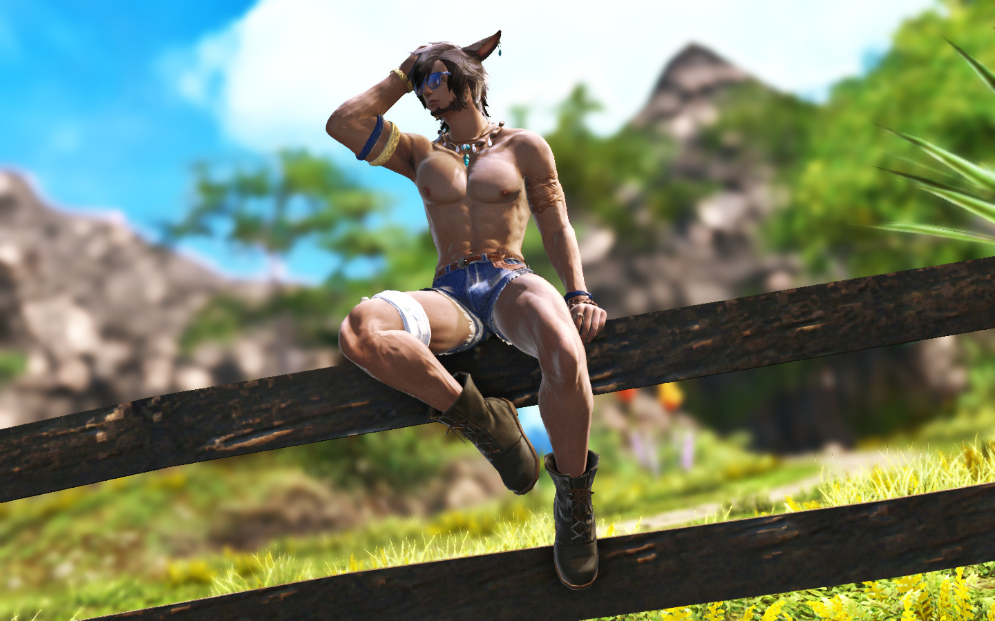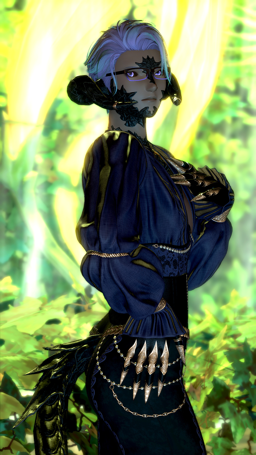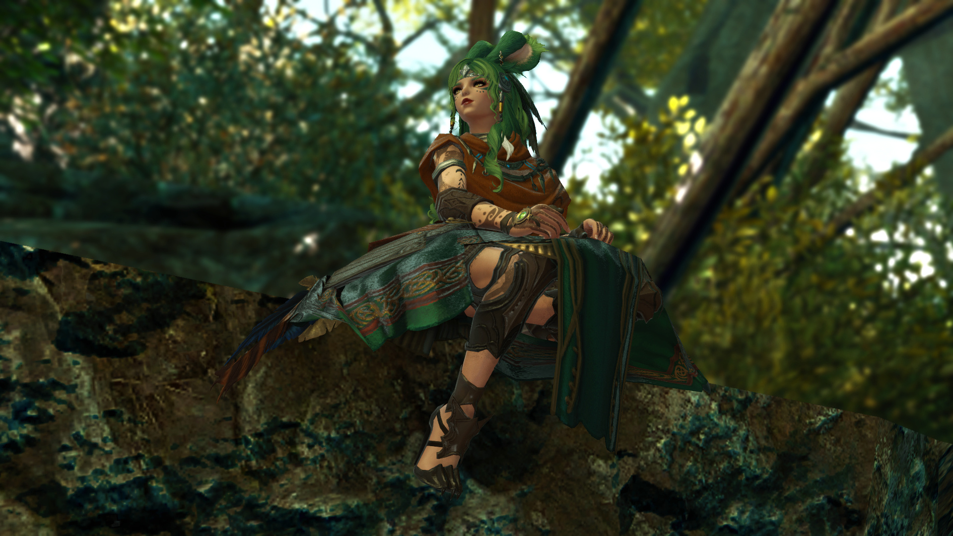 Kesjaris was born in the Rak’tika Greatwood, at the height if the Light’s hold over the land, and he grew up hearing stories about the darkness that used to shroud the sky at night and the beauty of the stars. He heard, too, praise for the flora and fauna, unspoiled as it was before the eternal presence of the Light had corrupted and killed many things and upset the balance the Viis worked so hard to maintain. Like all of the boys in his village, he was soon taken on by an older male to train and prepare for the solitary life that every male Viis lived—protecting the Greatwood as a whole by roaming the territory his mentor had roamed for nearly a century before him. Often, they traveled together. Just as often, they traveled alone.It was during his training that Kesjaris discovered he had a connection to the land, and could manipulate the earth and green, growing things as well as aid in plant growth. So, when he visited the neighboring villages to do his due diligence, he also offered his talents to help their struggling gardens grown in the ever-present Light. He was welcomed more often than most, and even sometimes requested by other Warders to help repair some of the damage in their own territories. This went on for decades, and the area he roamed and those surrounding it flourished all the more with the aid of his talents. But there still remained many threats to secure, and Warders were not precisely plentiful.It was not unusual to find a Sin Eater in the Greatwood, and Kesjaris killed many, but even the Warders of the Greatwood had their limits. When Warders in other territories died or were turned, there were not enough of their protégé to step up and take their place. The Sin Eaters began encroaching further and further into the Greatwood, eventually growing enough in numbers and power to force several of the villages near Kesjaris’s territory to be left entirely, the Viis moving further into the Greatwood to make new homes in safer locales. Many and more of his people were eradicated altogether, and after years and the constant threat of the Sin Eaters thinning their numbers, Kesjaris ventured deep into the wood to request that some of the women join the Warders in eliminating the bulk of the threat. When even that failed, Kesjaris knew that something had to be done, and proposed to his mentor leaving the Greatwood to find aid from beyond the trees.That was met with disapproval and a warning: If he left, he would never be welcomed back by the Wood or its people. But Kesjaris was determined to wipe out the threat once and for all, and so, with a heavy heart, he ventured out of the Rak’tika Greatwood. His travel took him first through the lush fields of Il Mheg, where he encountered the pixies, whom he petitioned for aid. When his lack of social graces landed him in hot water with the diminutive Fae, however, their offer to direct him to someone who could help him ended with banishing him to another world entirely.He woke up on the Source in the Black Shroud, confused and utterly lost. When he ventured out to get his bearings, hunt, and look for signs of civilization, he encountered an Elezen who had never heard of his home, but agreed to attempt to help him find someone who knew of it. From then on, Kesjaris became known as Rhyle—a spur-the-moment name he came up with to give to the Elezen—and the pair made their way to Gridania, where Rhyle discovered three things: The Viera he encountered also did not know of his home, he could no longer command the earth or control plants, and he needed something called “gil” to use transportation to get to other places. The last part, his Elezen friend helped him with, and he has traveled ever since, offering his services for odd jobs to earn coin as he searches for someone who knows of his home and can help him return to save it.