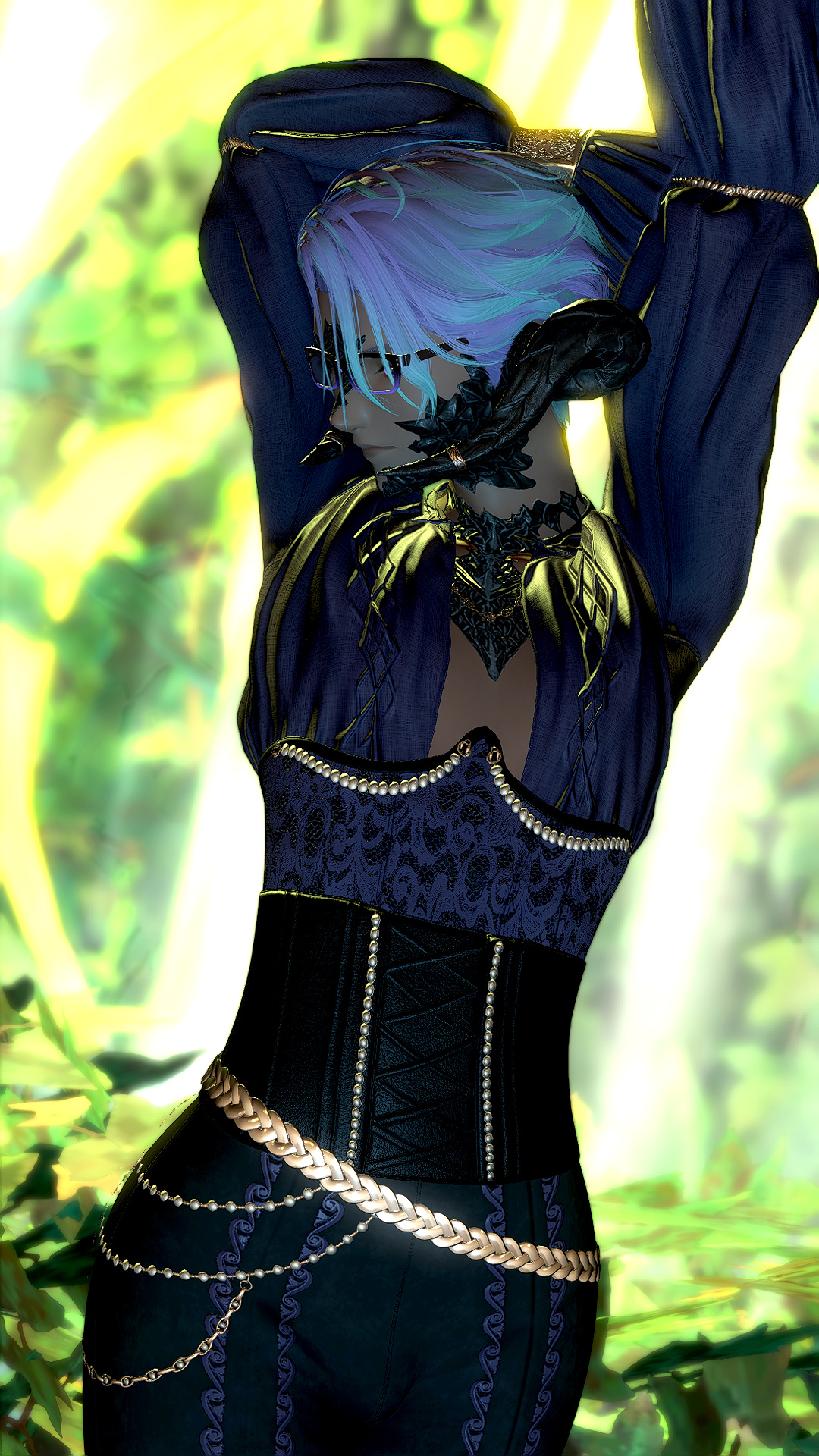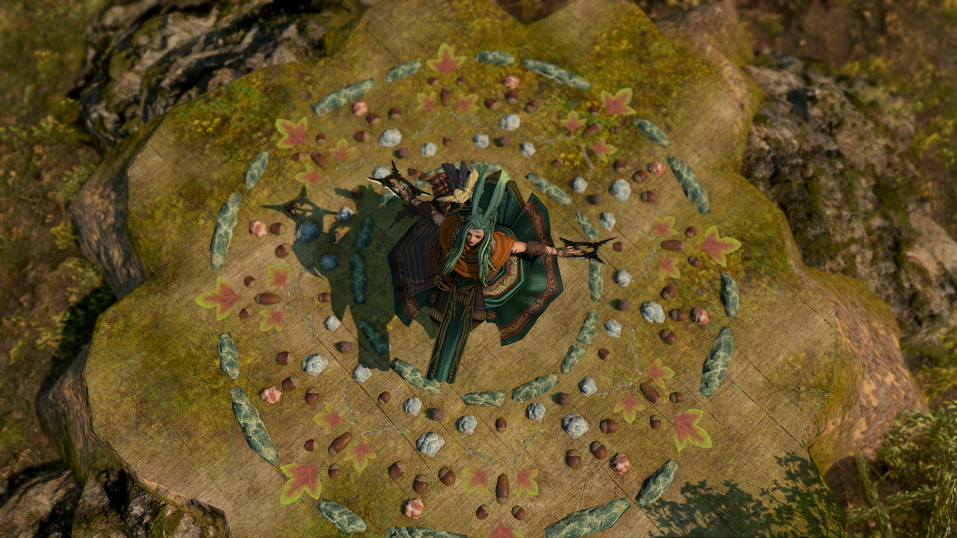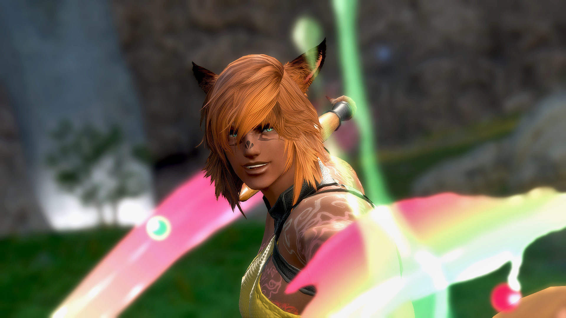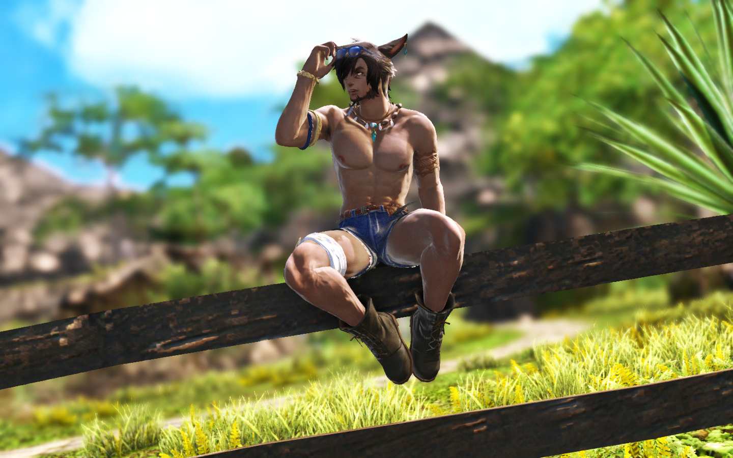 Kesjaris was born in the Rak’tika Greatwood, at the height if the Light’s hold over the land, and he grew up hearing stories about the darkness that used to shroud the sky at night and the beauty of the stars. He heard, too, praise for the flora and fauna, unspoiled as it was before the eternal presence of the Light had corrupted and killed many things and upset the balance the Viis worked so hard to maintain. Like all of the boys in his village, he was soon taken on by an older male to train and prepare for the solitary life that every male Viis lived—protecting the Greatwood as a whole by roaming the territory his mentor had roamed for nearly a century before him. Often, they traveled together. Just as often, they traveled alone.It was during his training that Kesjaris discovered he had a connection to the land, and could manipulate the earth and green, growing things as well as aid in plant growth. So, when he visited the neighboring villages to do his due diligence, he also offered his talents to help their struggling gardens grown in the ever-present Light. He was welcomed more often than most, and even sometimes requested by other Warders to help repair some of the damage in their own territories. This went on for decades, and the area he roamed and those surrounding it flourished all the more with the aid of his talents. But there still remained many threats to secure, and Warders were not precisely plentiful.It was not unusual to find a Sin Eater in the Greatwood, and Kesjaris killed many, but even the Warders of the Greatwood had their limits. When Warders in other territories died or were turned, there were not enough of their protégé to step up and take their place. The Sin Eaters began encroaching further and further into the Greatwood, eventually growing enough in numbers and power to force several of the villages near Kesjaris’s territory to be left entirely, the Viis moving further into the Greatwood to make new homes in safer locales. Many and more of his people were eradicated altogether, and after years and the constant threat of the Sin Eaters thinning their numbers, Kesjaris ventured deep into the wood to request that some of the women join the Warders in eliminating the bulk of the threat. When even that failed, Kesjaris knew that something had to be done, and proposed to his mentor leaving the Greatwood to find aid from beyond the trees.That was met with disapproval and a warning: If he left, he would never be welcomed back by the Wood or its people. But Kesjaris was determined to wipe out the threat once and for all, and so, with a heavy heart, he ventured out of the Rak’tika Greatwood. His travel took him first through the lush fields of Il Mheg, where he encountered the pixies, whom he petitioned for aid. When his lack of social graces landed him in hot water with the diminutive Fae, however, their offer to direct him to someone who could help him ended with banishing him to another world entirely.He woke up on the Source in the Black Shroud, confused and utterly lost. When he ventured out to get his bearings, hunt, and look for signs of civilization, he encountered an Elezen who had never heard of his home, but agreed to attempt to help him find someone who knew of it. From then on, Kesjaris became known as Rhyle—a spur-the-moment name he came up with to give to the Elezen—and the pair made their way to Gridania, where Rhyle discovered three things: The Viera he encountered also did not know of his home, he could no longer command the earth or control plants, and he needed something called “gil” to use transportation to get to other places. The last part, his Elezen friend helped him with, and he has traveled ever since, offering his services for odd jobs to earn coin as he searches for someone who knows of his home and can help him return to save it.
