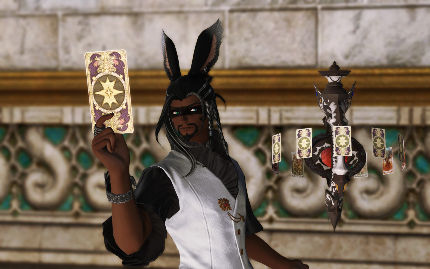 Though Cygnus would tell anyone that his life has been far from remarkable and is fairly private about his past, there is one thing that is sure about him: He has always had a deep connection to the stars. Born, like most Viera, in the Golmore Jungle, he spent his childhood years in a small village near the jungle's edge. As with many border areas, there were occasionally interlopers that had to be dealt with, but not much of note happened in the village proper. As a result, his days were filled with learning how to hunt, how to fight, and how to do various tasks necessary for the village's survival.At night, he breached the thick jungle canopy to gaze at the sky with his close friends, and they made up stories about the lights that lived in the skies. They were the torches of the villages that their fallen went to rest, or the twinkling lights of a far-off land where other children looked down upon the trees and wondered at the green that they saw, and what lights of their own could be seen winking from beneath the ever-shifting leaves. They were great creatures in the sky that woke with the moon, hunting each other endlessly through the darkness and clouds.When he left to live and train with the Warders, Cygnus left those friends behind, but he never gave up his star-gazing nights, his only connection to the people he'd loved in that village. He wondered, always, whether his friends still clung to those highest branches and made up stories about the stars. He went about his duty as a Warder for decades always checking in with them when he was allowed into the village for breeding and collecting young Warders.When his home burned, he and many others died or were forced deeper into the Wood, and he found out that his old friends had been lost. That was when he decided to leave the Wood behind. For a while he travelled, and when he heard of a place where they studied the stars, he travelled there and met a Sharlayan scholar, who took him in and had him tutored in language, reading, writing, rudimentary knowledge. He was a quick study, and several years later he was accepted into the Studium.It was love at first lecture, and he devoured every piece of knowledge he could gain, eventually earning his Archon mark in Sharlayan Astrology and becoming a scholar and a professor. Now he lives his passion and honors the memory of those he's lost, teaching new generations about the night sky that they all share.