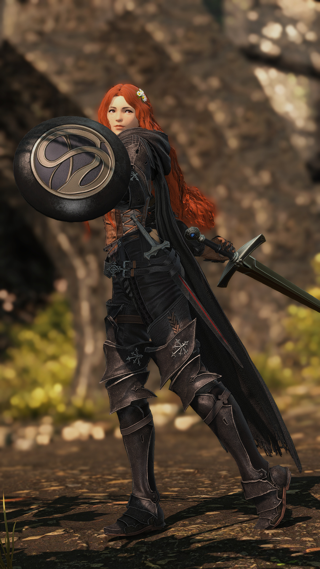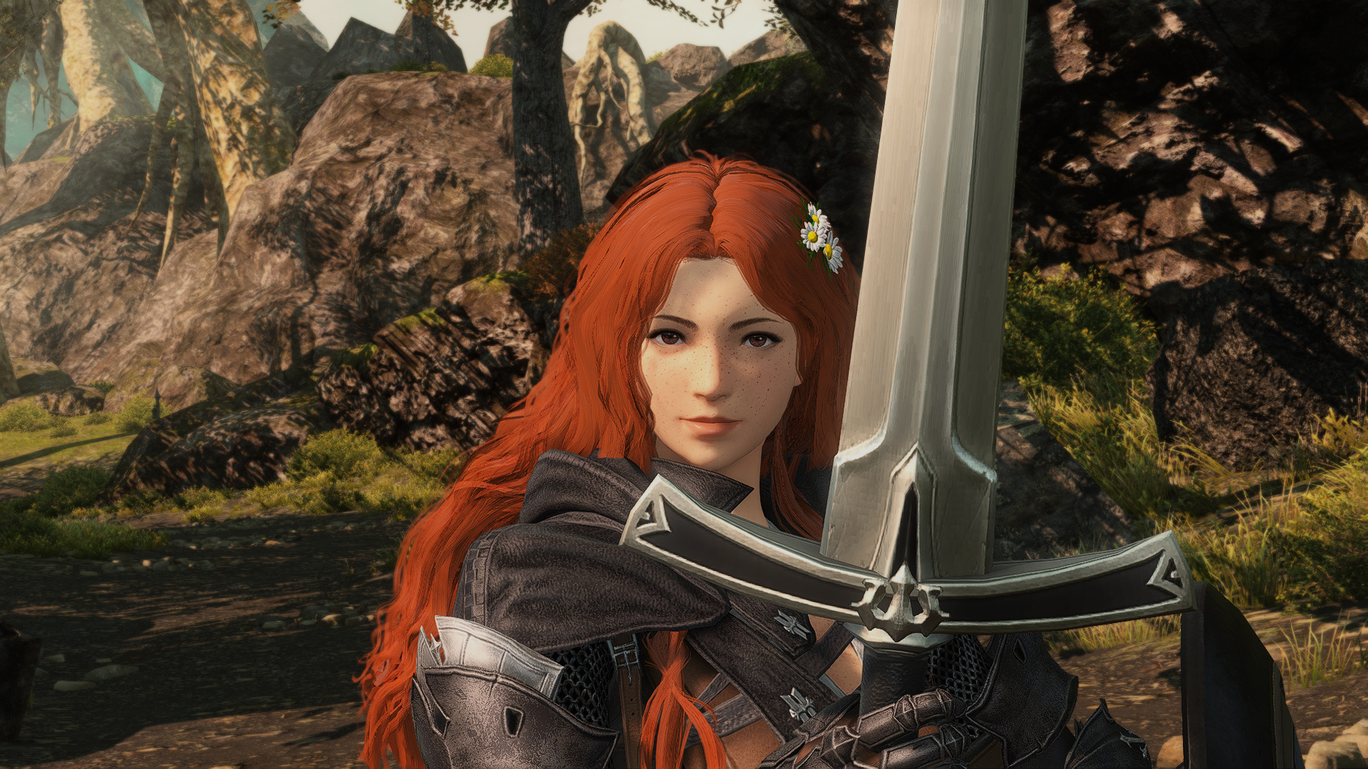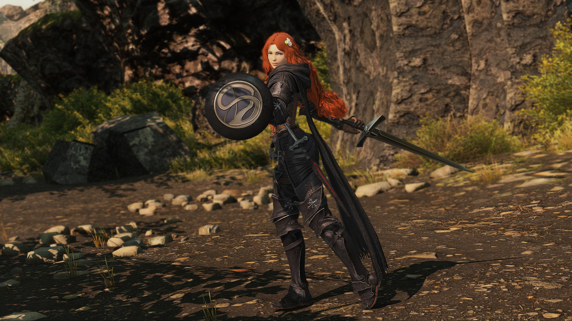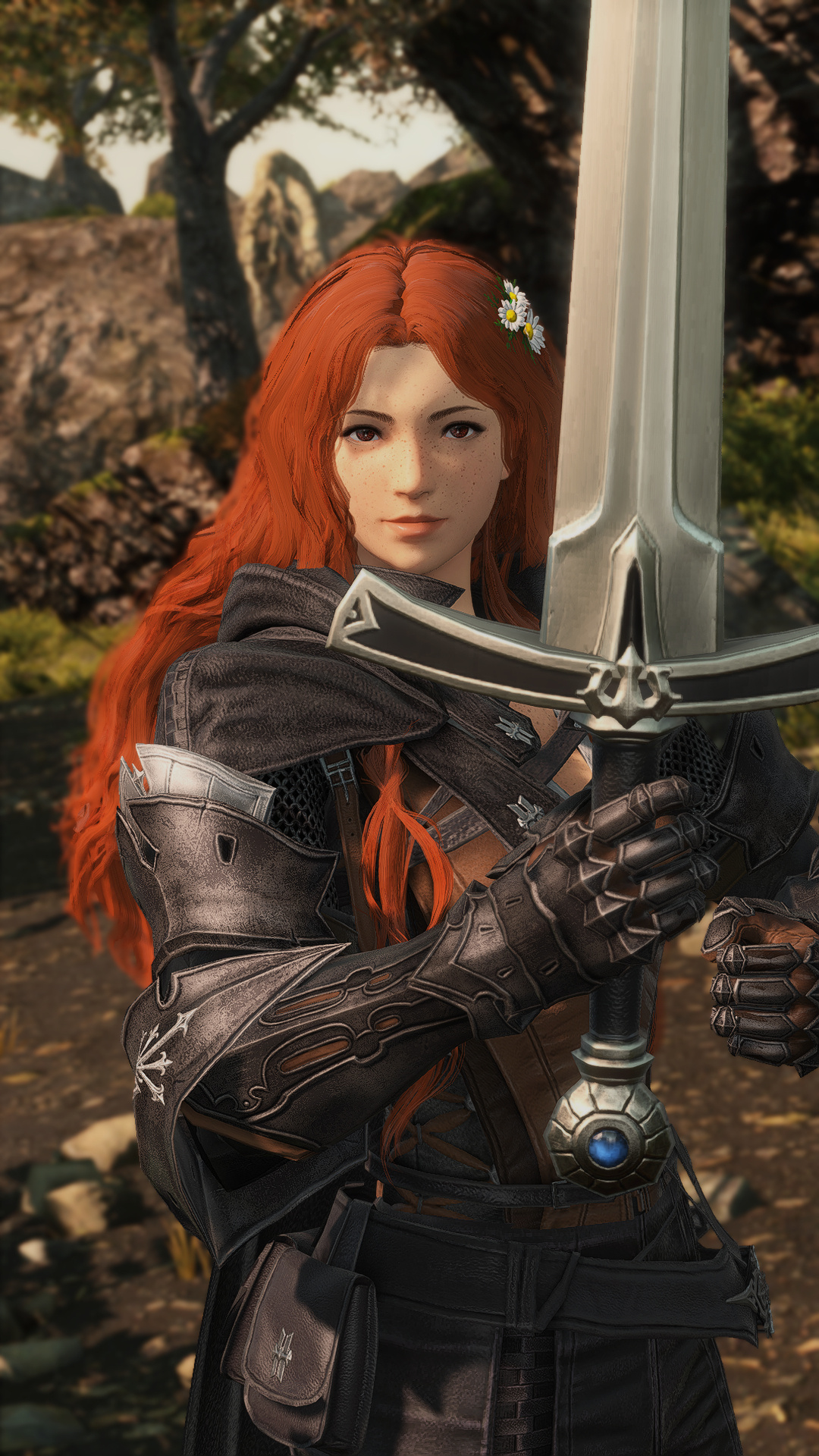 She has an accent that suggests she might have lived in a rural locale for most of her formative years. When she's not in heavy armor or travel leathers, she tends to dress in plainer clothes than most.