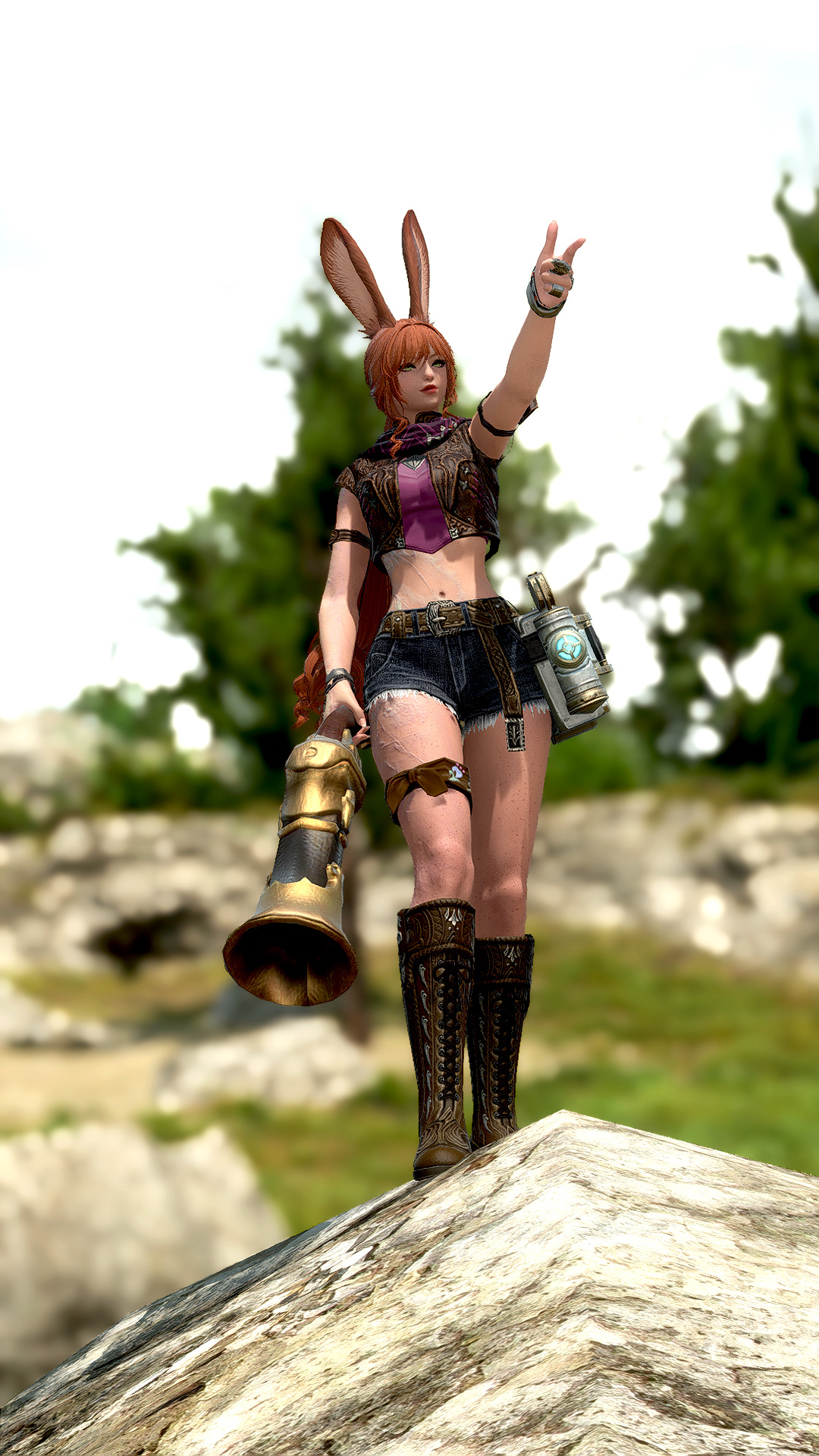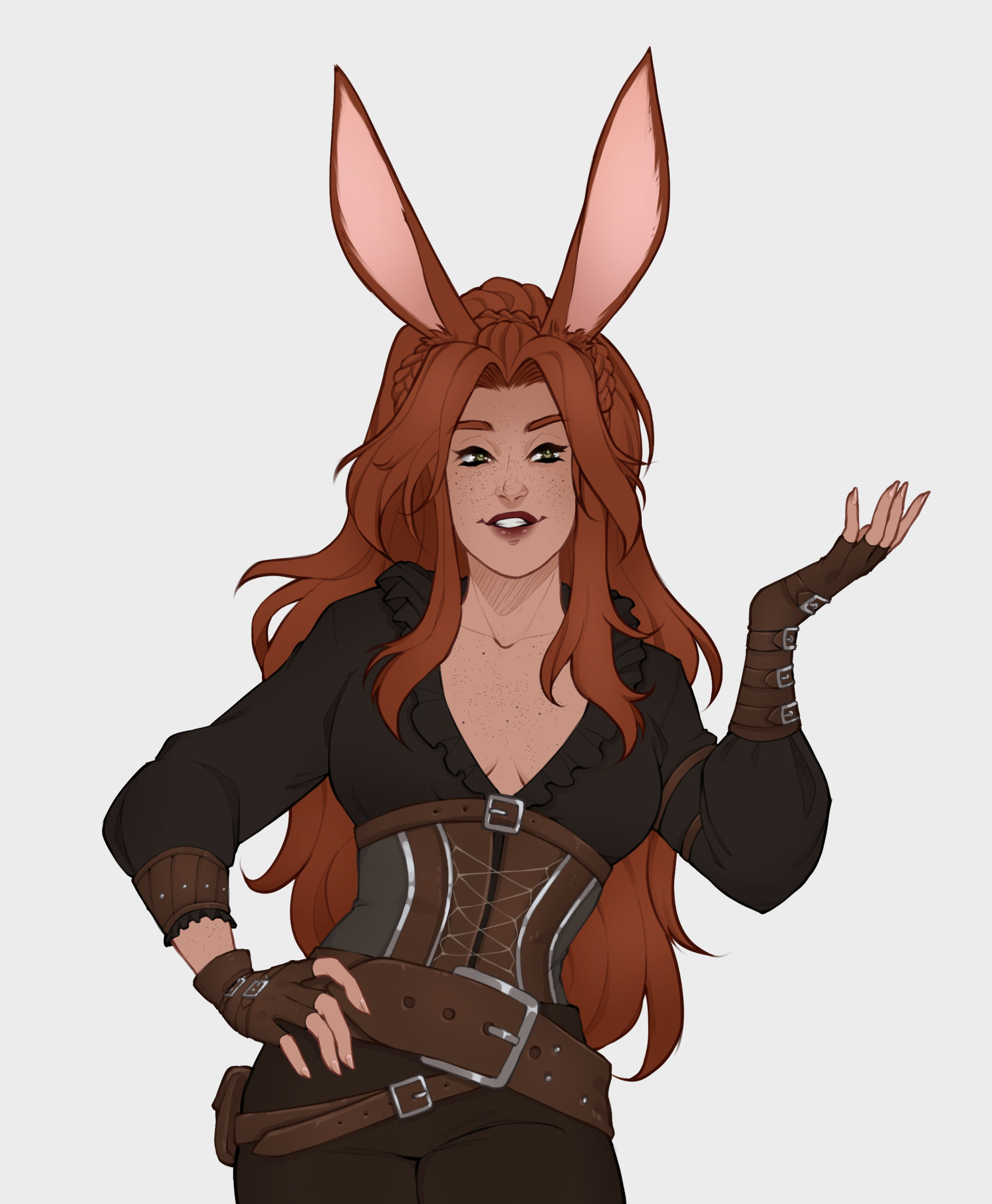 Lydjana was born in the Skatay foothills, in a Veena village called Silvaret. As a child, she was incredibly inquisitive, always asking a multitude of questions and deconstructing things to find out how they worked. Her “improvements” were often detriments, however, and once the older Viera figured out that it was her doing, she was banned from making any more alterations to already existing, functioning contraptions.So, as young pioneers often do, Lydjana began to make her own.They were simple at first, but as she grew, they began to increase in complexity, and eventually those contraptions became useful to the village. But Lydjana began to feel out of place in her village, so when she reached her seventeenth turn, she set out to move to another village.It wasn’t long before that village was destroyed, however, and when she found the source of the destruction to be outside of the Wood, she decided to leave her home and try to destroy the metal men who had rained havoc on her people in retribution. As she knew how to take things apart better than how to put them together, her plan of dismantling the metal men—literally—worked for a little while. When they finally retreated from their post, she decided to move on and make a peaceful life for herself where she could spend her days building and inventing things.She began to travel, and about a turn into said travels, ended up in Eorzea. When she arrived in Limsa Lominsa, she asked for the best place to work with contraptions and was pointed to a processing plant in Northern Thanalan. She offered her services for a minimal wage, and was accepted as a worker there. As she proved her prowess at learning how to handle machines and even make improvements that had graduated from requiring quotation marks around the word, she became an invaluable asset—until one unfortunate incident involving a swim in a vat of raw ceruleum cut her work short.It took her nearly a turn to recover, and once she had, she decided to take more mundane, safe jobs (you know, like mercenary work), and keep inventing and building as a passion project. She has since discovered a love of guns, and wants to become a gunsmith that people will want to commission.