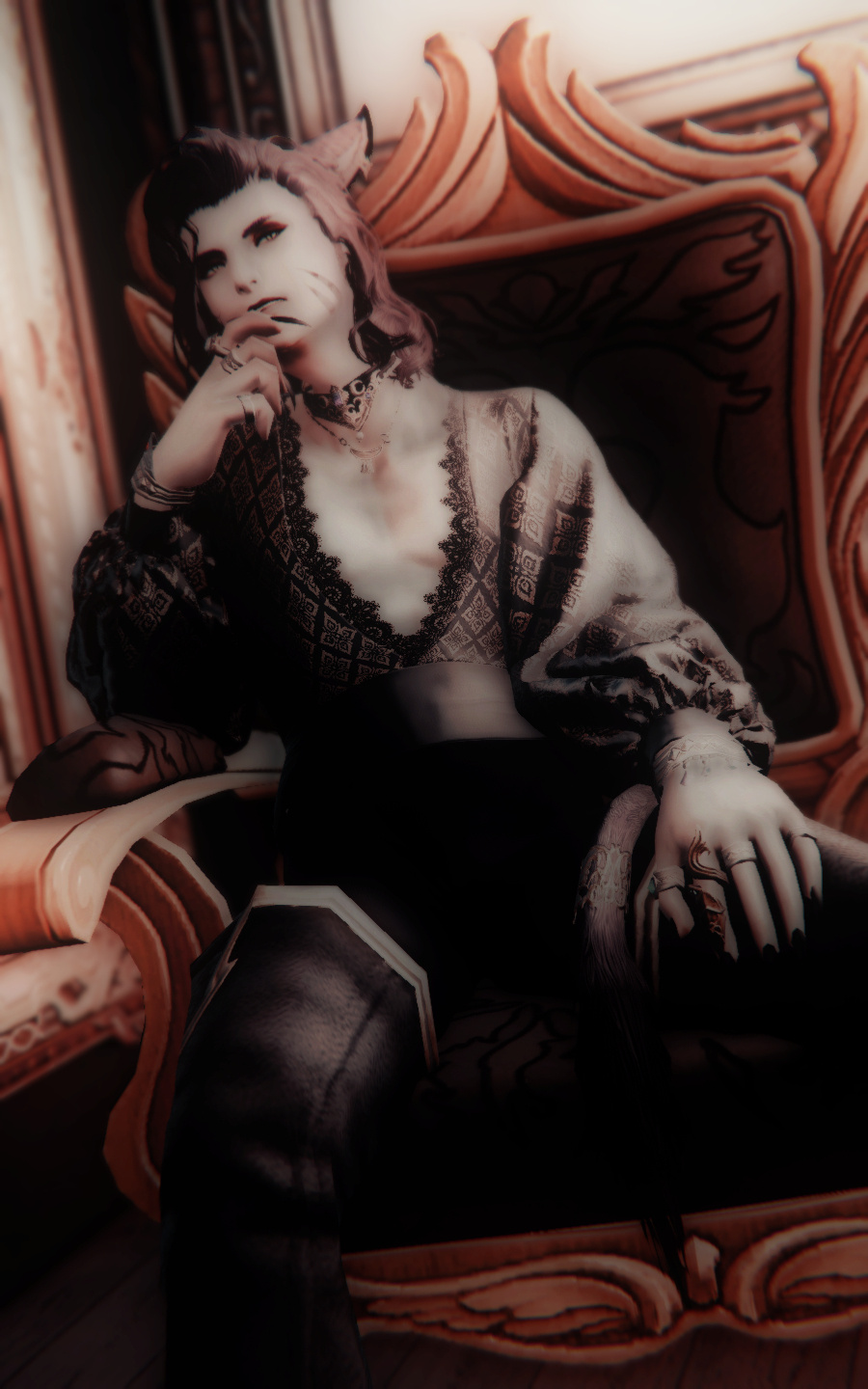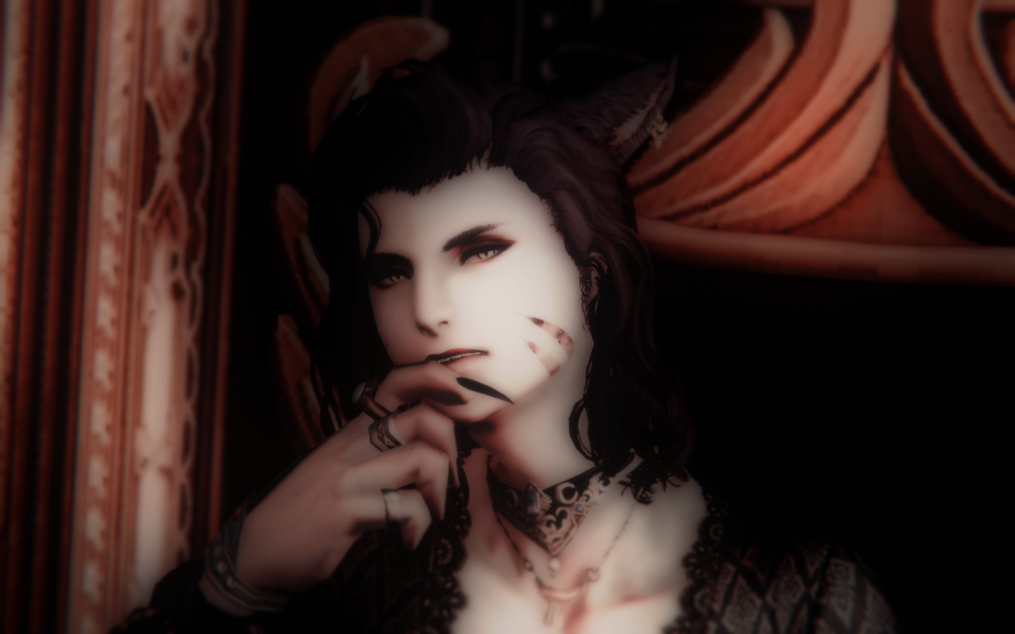 M’rath was not a special child. He did not excel in hunting, did not seem particularly cunning when it came to battle strategy or fighting. He tended toward intellectual pursuits, though his propensity to abandon projects before they were done was high enough that his parents began to wonder if he had some sort of attention problem. in early adolescence, while other Tia were having contests of strength, Rath was largely uninterested in one day becoming Nunh. Instead, he began poring over tomes and experimenting with magic, and that was where things began to change for him.He found out that he held some latent talent for aetheromancy, and as he began to learn on his own, something else awakened in him: He was developing the ability to hear surface thoughts and manipulate the outside world with his mind. Without the ability to curb it, though, he became plagued by the constant stream of consciousness all around him and eventually left his clan with the intent of finding some sort of long-term solution. That was when a middle-aged elezen scholar found him, starving and penniless.The man decided to take M'rath in when he learned that he had the same abilities, and took him on as a protégé. However, where M'rath thought that the man would teach him how to quiet the constant unwanted mental noise, the scholar was instead intent upon forcing M'rath to hone his ability to delve deeper into the mind, compel others to do his bidding, and practice telekinesis. The teachings devolved into outright abuse, until M'rath killed his mentor in a battle of wills gone wrong. With no one to inherit the man's vast wealth, Rath decided to become the man's beneficiary, forged his will, and inherited his fortune.Over the years and into his adulthood, Rath began to outwardly participate in more productive pursuits--investing in startup businesses, helping those in need of short-term assistance, and funding expeditions to long-lost ruins in search of artifacts and knowledge. He began to write stories and compose music. But none of these things brought a relief to the itch that he'd had since his mentor died, and it wasn't until he chanced to mentally overhear a killer stalking an innocent person that he found it. The relief that came with taking a monster off the board. The high of mentally torturing someone who deserved it. Little by little, Rath morphed into a monster of his own, driven by the need to kill his own tormentor, over and over again.