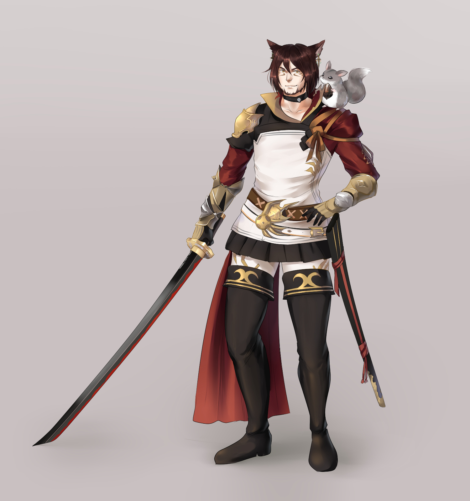 Like every male Xaela born to the Borlaaq, Qorin was destined from the moment he was born to be left behind by his mother and adopted by the Iriq tribe. Unlike many male Xaela, though, this boy did not grow up tall and strong. He barely cleared the tallest of his female counterparts, his face never sharpened like the other men of his tribe, and no matter how he tried, he never could get the muscle mass or masculine shape that his brothers sported so easily. With his softer, rounder face and his diminutive stature, he was often mistaken for a female, and it wasn’t until he was in his teens that he realized that he was actually somewhere between genders. Unfortunately for him, signs of weakness on the Steppe are often viciously exploited, and the knowledge that he was not the man he’d thought he was and would never be the man he aspired to be pained him deeply.But still, he tried. Training with a spear, fighting alongside the men and women of his tribe, he never quite measured up. In training with a bow, or an axe, or most other weapons, he struggled to keep up. Even the realm of aether and spirituality fled his oppressive mind, and eventually he found himself caring for the tribe’s young ones and doing the tribe’s more domestic tasks. In that, he was highly skilled, and highly unhappy. Tensions grew between Qorin and a few of the more overconfident males. When those tensions came to a head, they came in the form of an assault that left him embarrassed, violated, and broken, and he decided then to leave and strike out on his own, so he went someplace far away where he could lick his wounds in peace: Eorzea.It was once he’d traveled halfway across the world and emotionally isolated himself that he found the clarity he’d been seeking on the Steppe and discovered that he did have a talent for healing and shaping elements. Hearing rumors of a guild in Gridania devoted to healing, he ventured there and began learning conjury in earnest. A few years later, Qorin began traveling and made his way to Coerthas, where he observed and practiced with the dragoons in Ishgard’s outlying settlements while acting as a live-in healer for a time. Finally, he’d found what he needed, and began to rebuild his confidence in himself little by little. Now he travels, offering his healing services where he goes, and hopes to reconnect with his people in a way that will make him want to go back home.