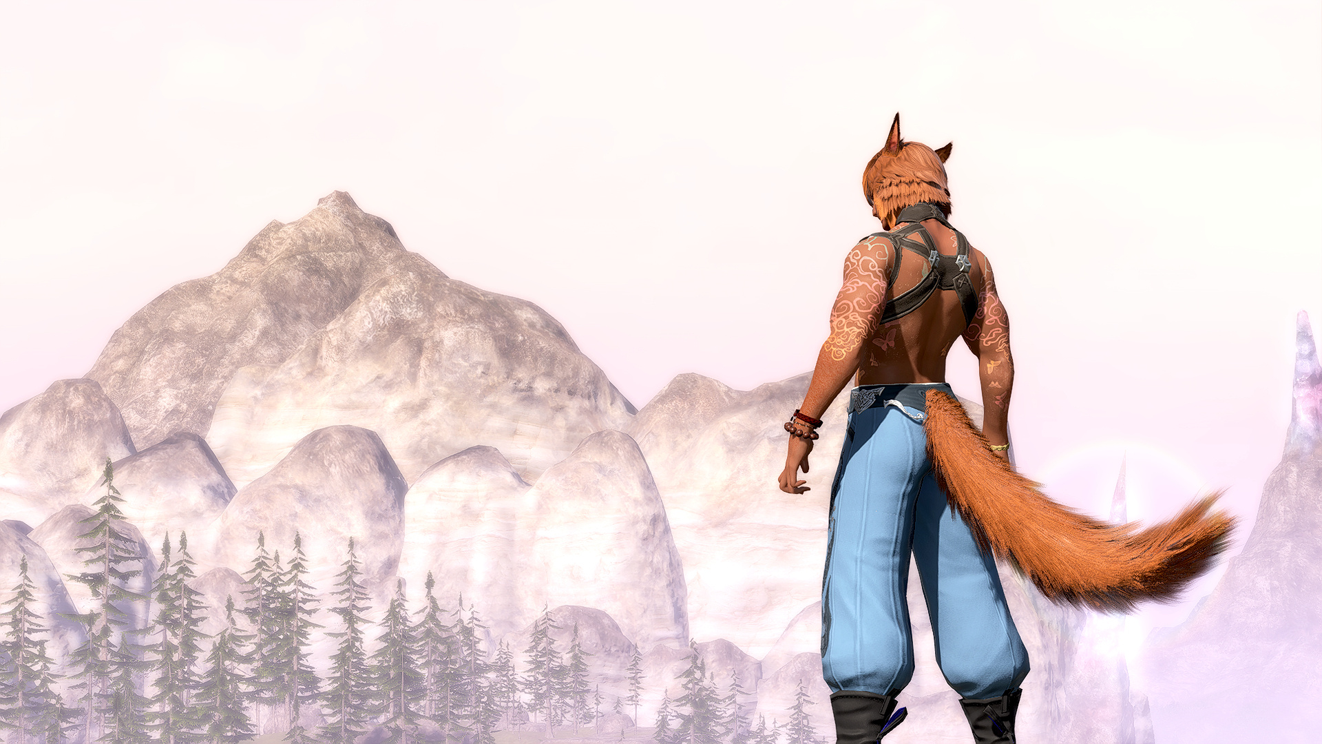 Cygnus can often be found outside at night in particular places in and around Sharlayan, stargazing. These are the times when it is most noticeable that he has starry tattoos all over his exposed skin, as they do not show in direct light.