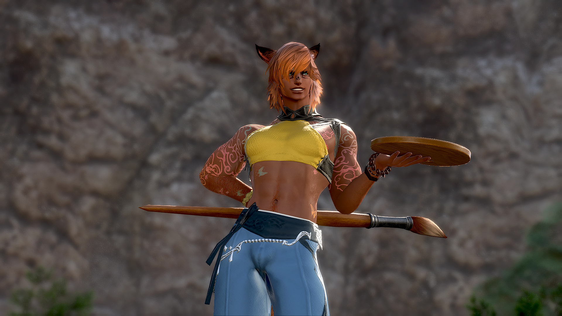 Shieke has been slowly becoming known in Limsa Lominsa and some parts of Ul'dah as someone not to catcall. If you've ever been in places with sailors or back alley dealers, they might have told you stories about some crazy Viera lass who took particular offense to catcalling and got physical.